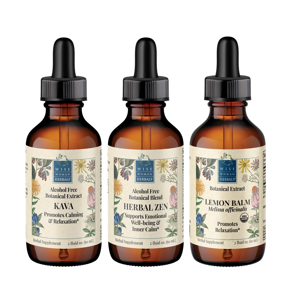 Yes. Kava provides grounding calm, Lemon Balm uplifts the mood and eases tension, and Herbal Zen offers a soothing multi-herb blend. They can be used individually or together depending on your needs.