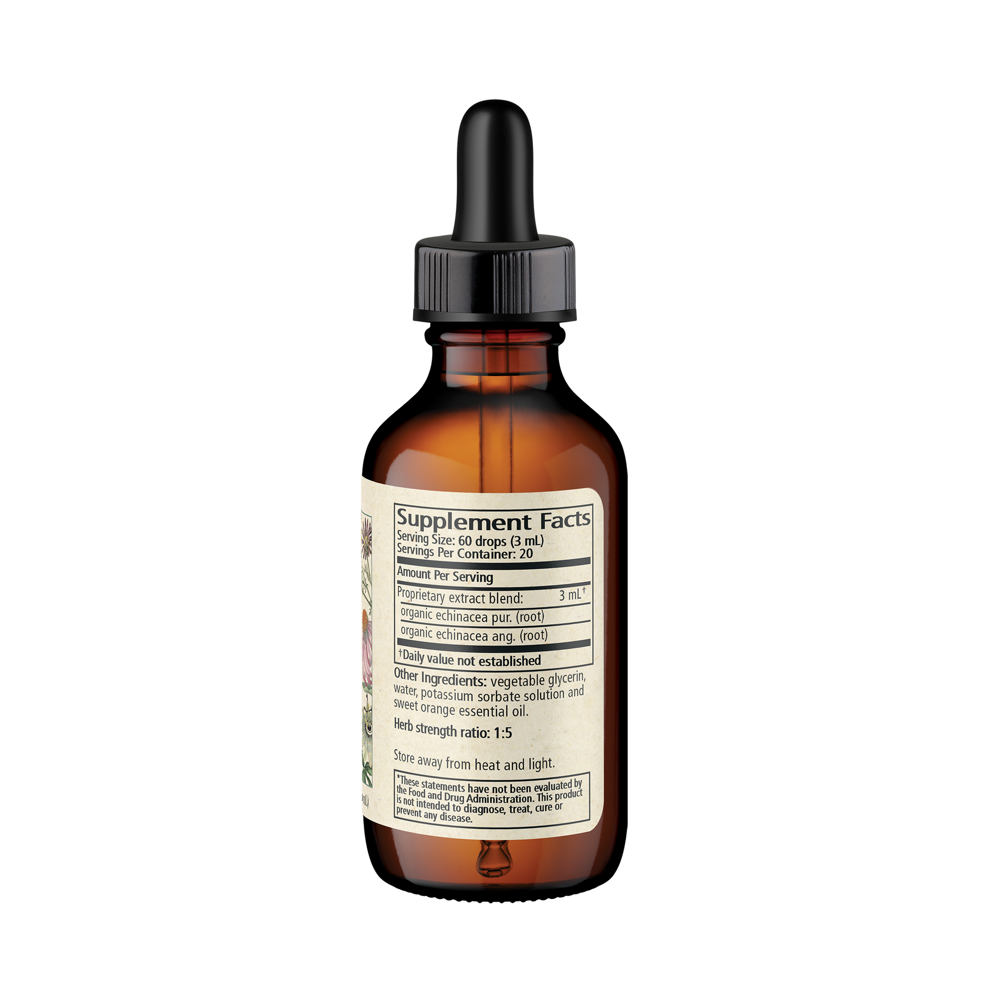 Ingredients: Echinacea pur, Echinacea ang, sweet orange essential oil, and potassium sorbate (0.1%) in a base of vegetable glycerin and spring water.