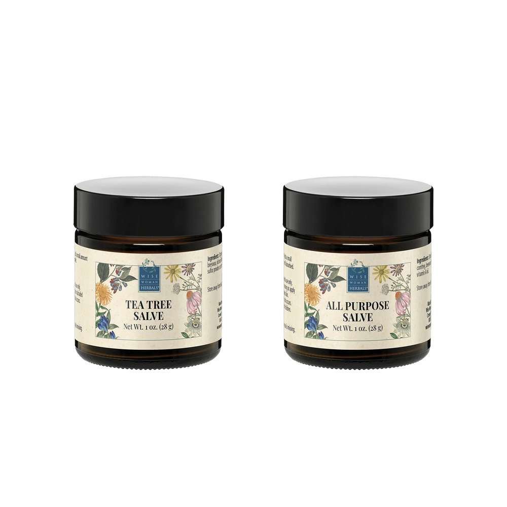 All Purpose Salve is generally kid-friendly. Tea Tree Salve contains essential oils—use cautiously on young children and avoid facial application.