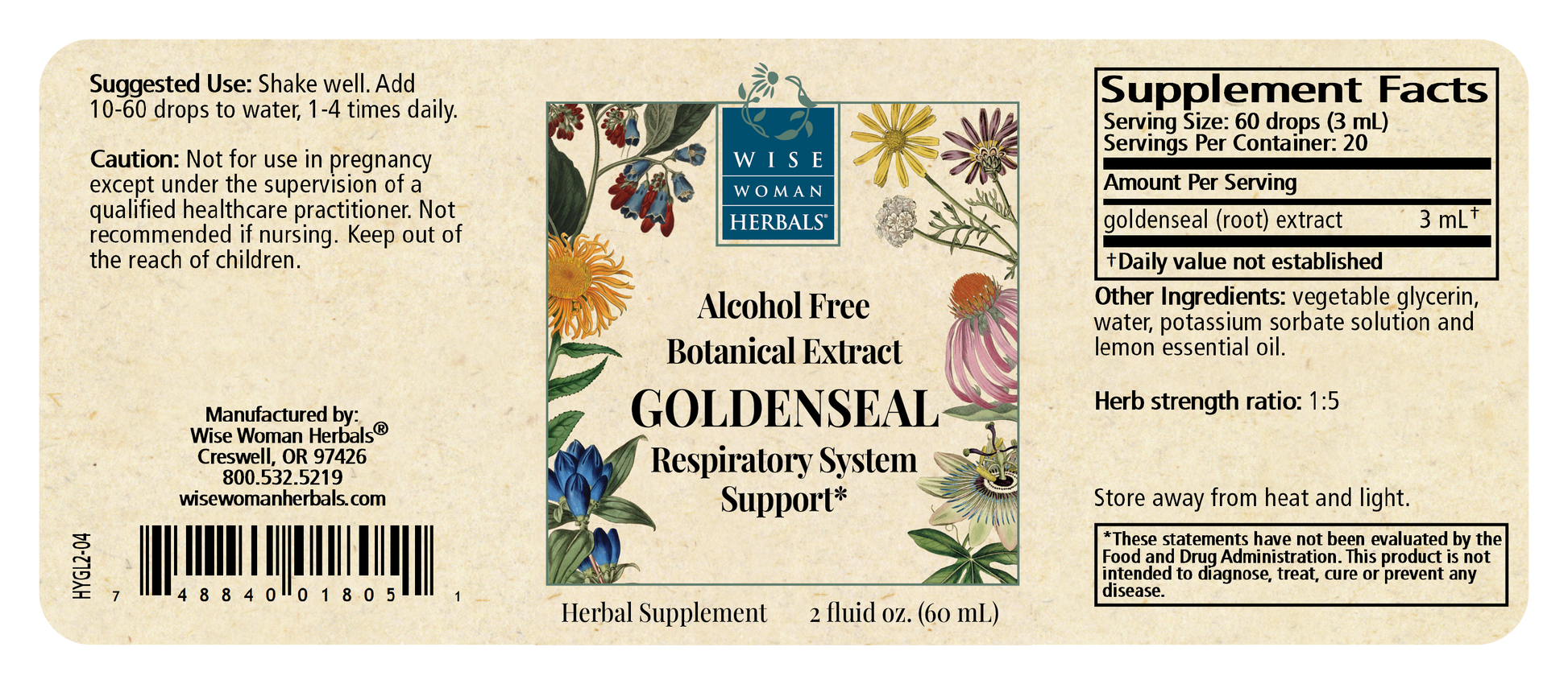 Ingredients: Goldenseal in a base of vegetable glycerin, mountain spring water and lemon essential oil with potassium sorbate solution 0.1%.