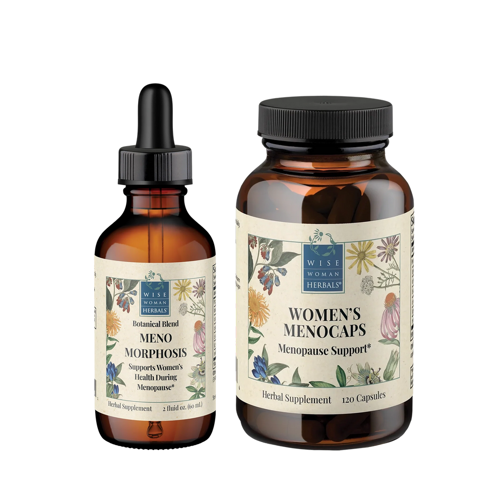 Yes. Meno Morphosis provides liquid herbal support for flexibility and dosing throughout the day, while Women’s Menocaps offer steady capsule-based nourishment. Many individuals use both together for comprehensive menopausal wellness.