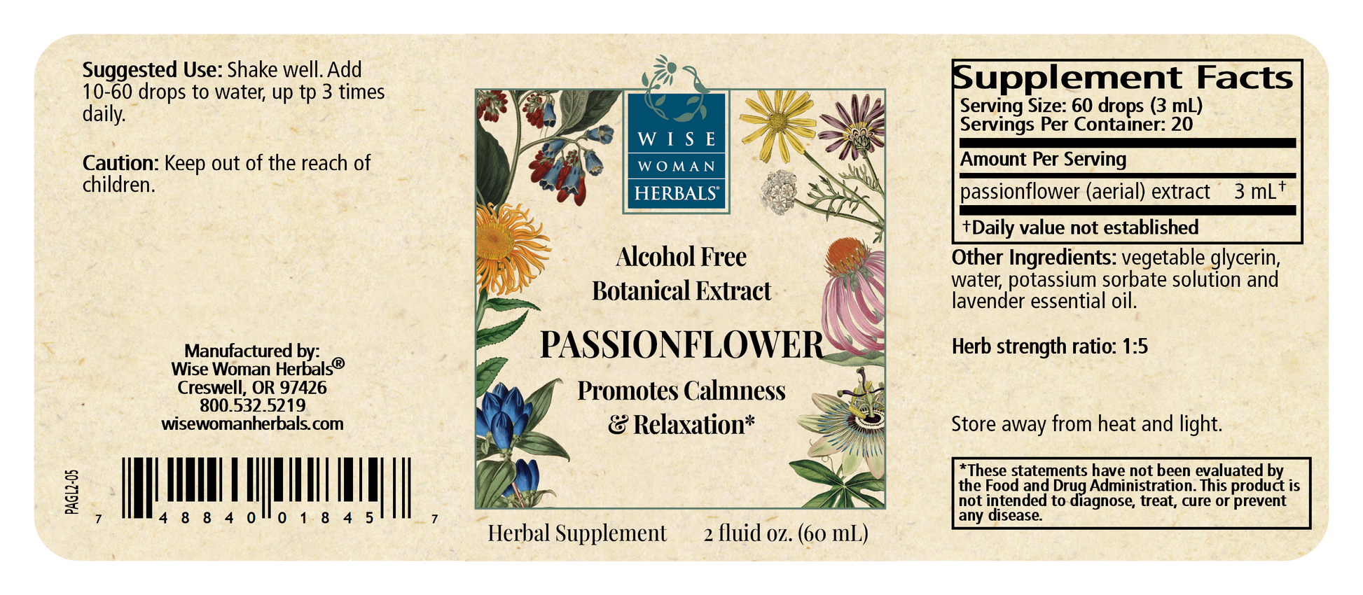 Ingredients: Passionflower in a base of vegetable glycerin, mountain spring water and lavender essential oil with potassium sorbate solution 0.1%.