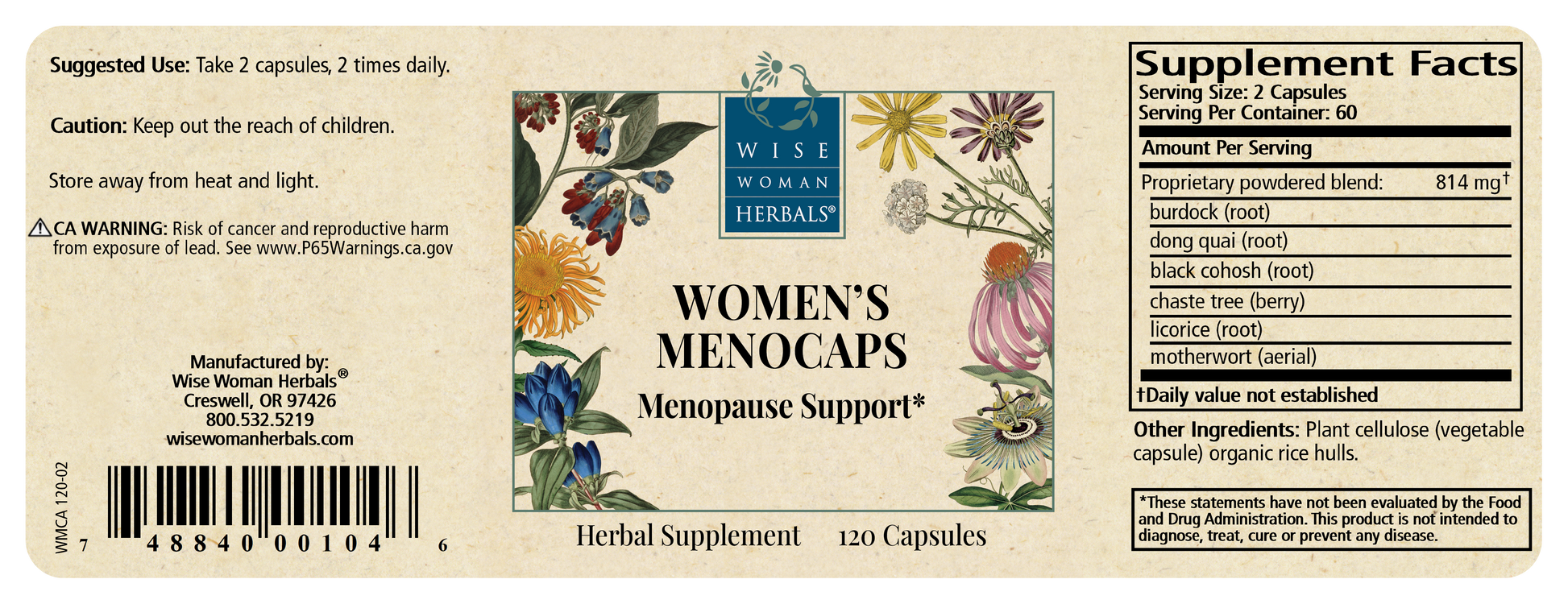 Ingredients: burdock, dong quai, black cohosh, chaste tree, licorice, motherwort and organic rice hulls in 100% vegetarian capsules.